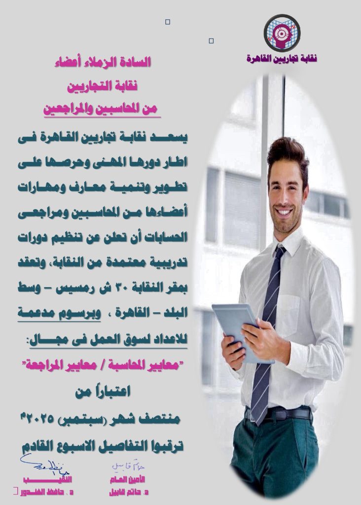 الرئيسية/أنشطة وخدمات النقابة/الدورات التدريبية/اعلان عن دورات تدريبية فى مجال معايير المحاسبة ومعايير المراجعة اعلان عن دورات تدريبية فى مجال معايير المحاسبة ومعايير المراجعة 9 ديسمبر، 2025 9 ديسمبر، 2025 فيسبوك تويتر لينكدإن واتساب تيلقرام