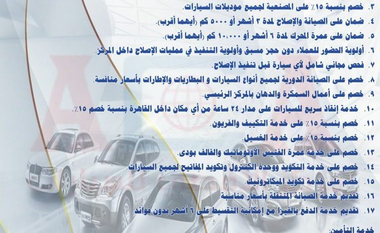 عرض تخفيض مقدم من مركز الاقصى لخدمة وصيانة السيارات