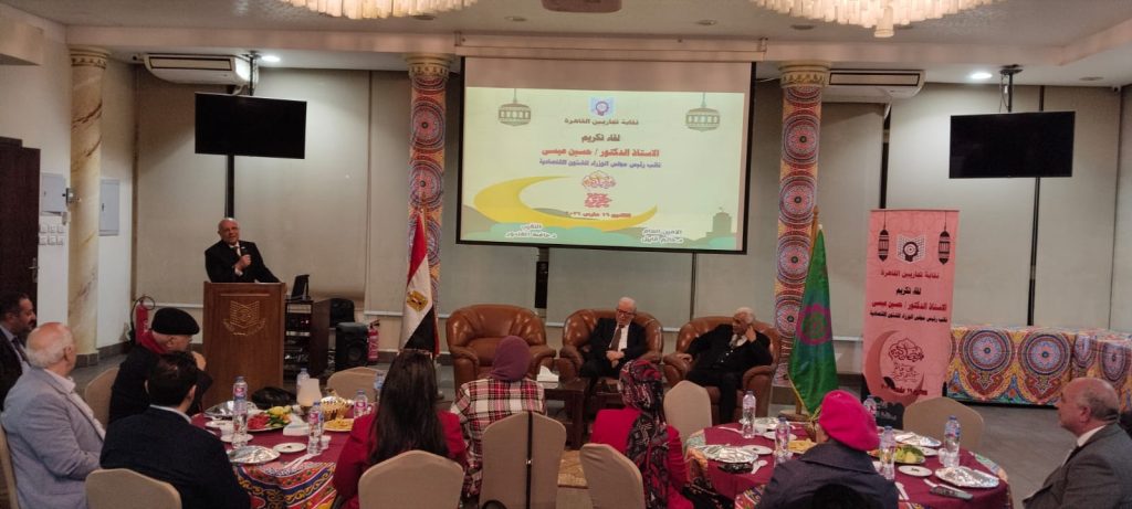 وفي ختام الحفل، قام نقيب التجاريين بتسليم درع النقابة للدكتور حسين عيسى تقديراً لمسيرته المتميزة، وسط أجواء من التقدير والاعتزاز، حيث حرص الحضور على التقاط الصور التذكارية توثيقاً لهذه المناسبة.