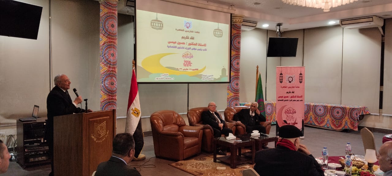 وخلال كلمته، أكد نقيب التجاريين أن تكريم الدكتور حسين عيسى يأتي تقديراً لدوره البارز كأحد الرموز الأكاديمية والاقتصادية المتميزة، ومسيرته الحافلة بالعطاء في مجالات التعليم الجامعي والعمل العام، فضلاً عن إسهاماته في إعداد أجيال من الكفاءات العلمية والعملية.