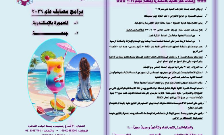 الرئيسية/رحلات ومصايف/برامج مصايف جمصة والمعمورة 2026 برامج مصايف جمصة والمعمورة 2026 منذ 3 ساعات منذ 3 ساعات فيسبوك تويتر لينكدإن واتساب تيلقرام