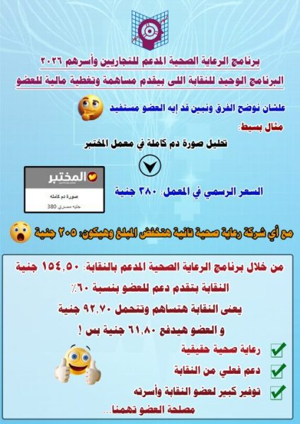 الرئيسية/أنشطة وخدمات النقابة/الأنشطة والخدمات العامة/الرعاية الصحية/مثال توضيحى لاستفادة العضو من البرنامج المدعم مثال توضيحى لاستفادة العضو من البرنامج المدعم منذ 20 ساعة : Abdelaziz Sabry كتب: Abdelaziz Sabry – منذ 20 ساعة فيسبوك تويتر لينكدإن واتساب تيلقرام