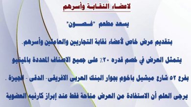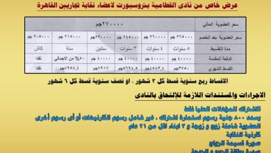 عرض تخفيض من نادى القطامية بتروسبورت لاعضاء نقابة تجاريين القاهرة