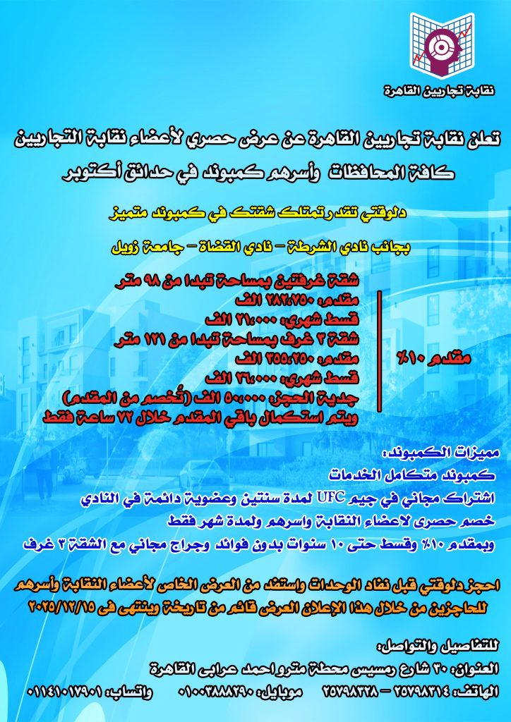 الرئيسية/عروض وتخفيضات/عرض لاعضاء نقابة التجاريين كمبوند حدائق اكتوبر عرض لاعضاء نقابة التجاريين كمبوند حدائق اكتوبر 9 ديسمبر، 2025 9 ديسمبر، 2025 فيسبوك تويتر لينكدإن واتساب تيلقرام
